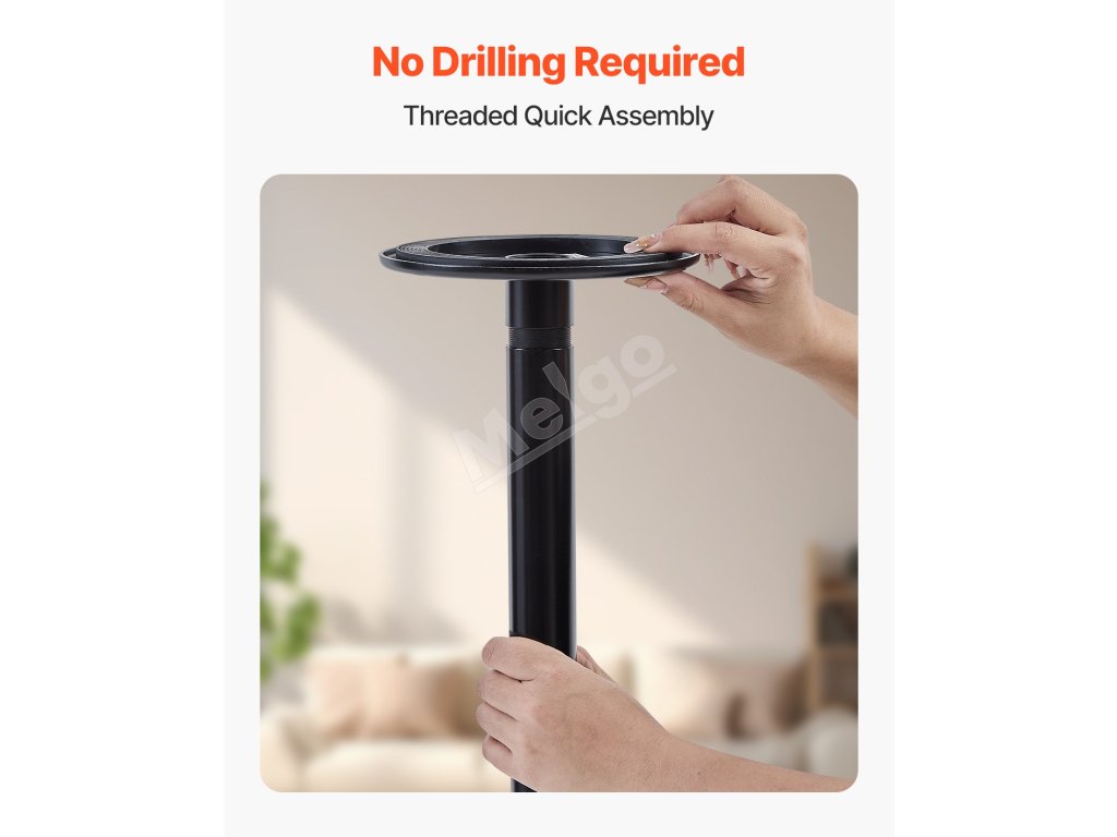 Naša prenosná tyč sa dodáva s kompletnou sadou montážneho príslušenstva. Jednoduchá montáž s otáčaním skrutiek umožňuje inštaláciu bez vŕtania. Môžete si vybrať montáž s predlžovacou tyčou A alebo predlžovacou tyčou B na základe výšky od stropu po podlahu, čím zabezpečíte ideálne prispôsobenie vášmu priestoru.