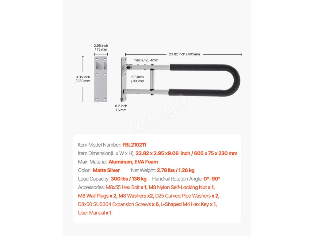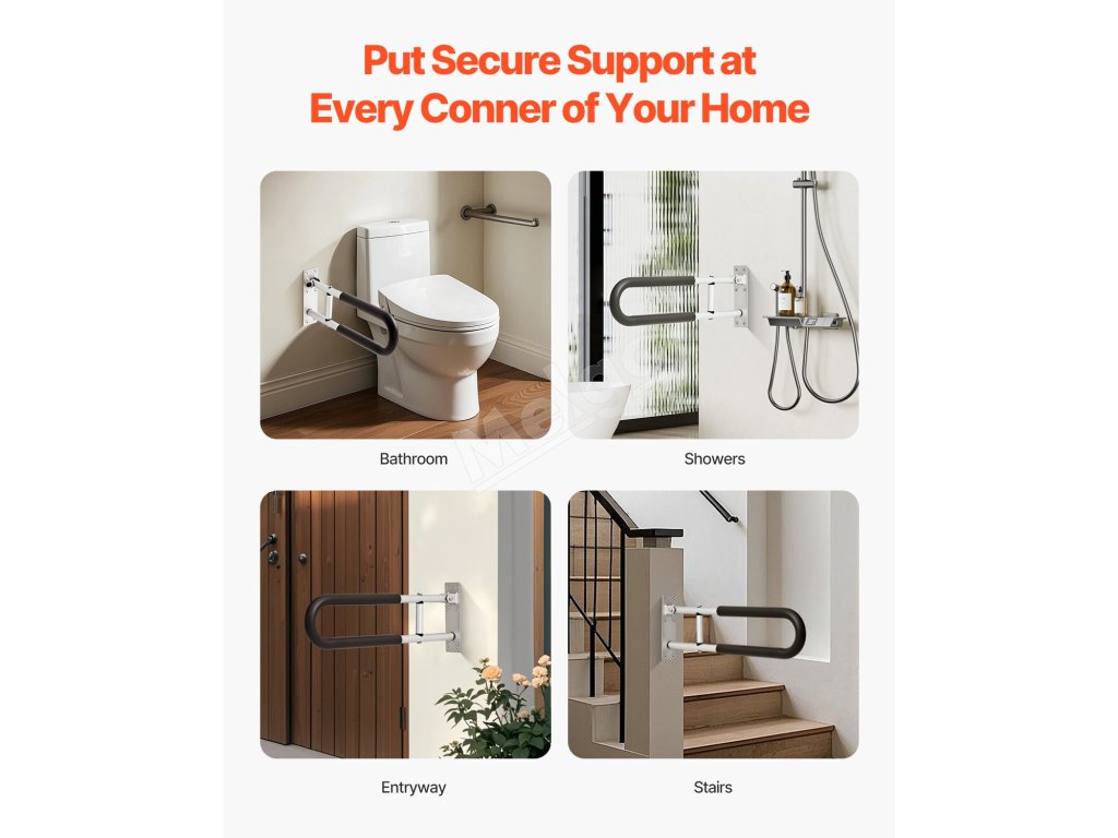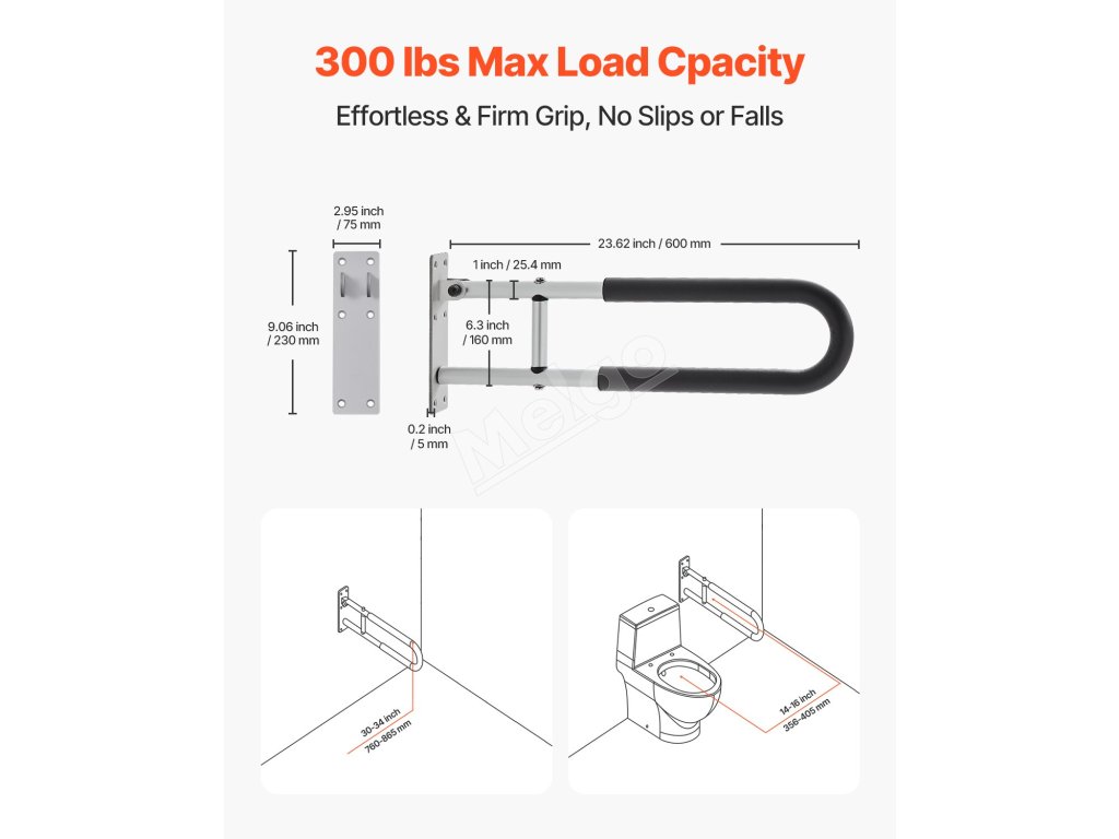 Toaletná oporná rukoväť u 23.8 inch sklápacia protišmyk nosnosť 300 lb