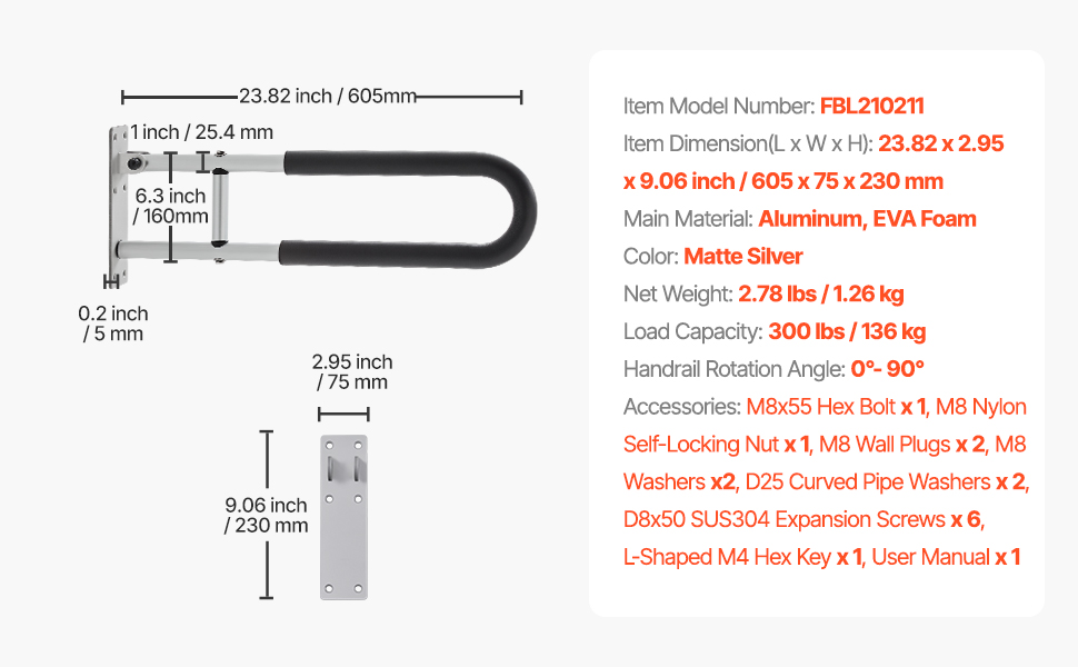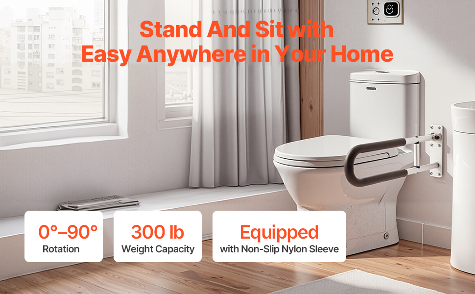 Naše výklopné bezpečnostné zábradlie na toaletu má robustnú nosnosť 300 kg a ponúka pomoc v spálni, kúpeľni, na toalete atď. Otáča sa v uhle 0°-90° a umožňuje nastavenie do vertikálnej polohy, čím šetrí miesto bez toho, aby sa znížila bezpečnosť. Stačí otočiť skrutky a ľahko získať potrebnú polohu.