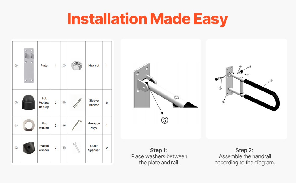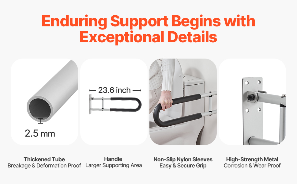 Naše záchodové madlo poskytuje stabilnú oporu a umožňuje bezpečné a stabilné sedenie alebo státie. Hrubostenná rúrka a protišmykové nylonové objímky zabezpečujú bezproblémové a bezpečné používanie. Toto madlo vyrobené z vysokopevnostného kovu s rozšíreným rozsahom opory ponúka trvalú oporu a väčšie pohodlie.