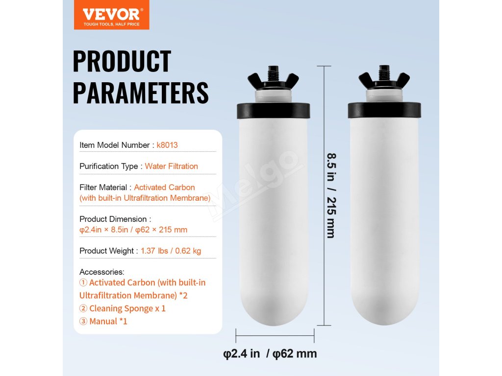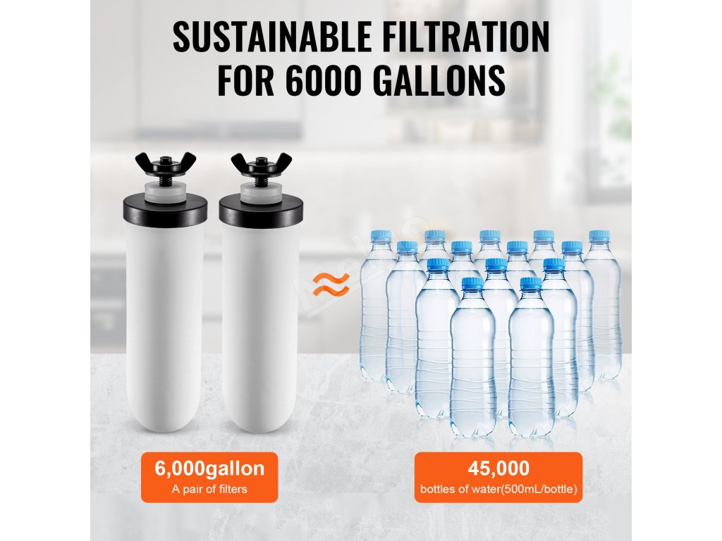 Naše náhradné filtre sú dokonale kompatibilné s väčšinou gravitačných systémov filtrácie vody na trhu, čím spĺňajú vaše udržateľné potreby pitnej vody. Každý pár filtrov dokáže nepretržite čistiť až 6000 galónov vody, čím účinne znižuje náklady na pitnú vodu.