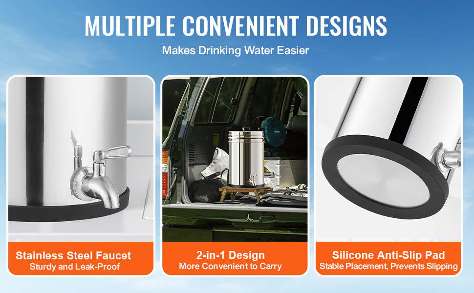 Náš pultový systém z nehrdzavejúcej ocele obsahuje kohútik z nehrdzavejúcej ocele, ktorý je robustný a odolný voči únikom. Je kompaktne navrhnutý, zmenší sa na polovicu svojej veľkosti, čo uľahčuje skladovanie a prenášanie. je tiež vybavený gumovou podložkou pod nohy v spodnej časti, ktorá zabezpečuje stabilné umiestnenie.