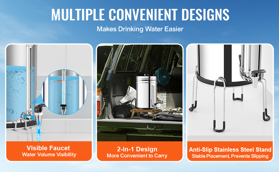 Náš pultový systém z nehrdzavejúcej ocele je vybavený viditeľným vodovodným kohútikom, ktorý vám umožňuje kontrolovať hladinu vody bez otvárania veka. Je kompaktne navrhnutý, zmenší sa na polovicu svojej veľkosti, čo uľahčuje skladovanie a prenášanie. Je tiež vybavený protišmykovým stojanom, ktorý zabezpečuje stabilné umiestnenie.