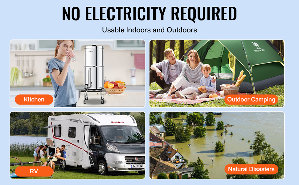 Náš systém vodného filtra sa ľahko inštaluje, nevyžaduje si elektrickú energiu, náradie ani vodovodné potrubie. Je vhodný do rôznych prostredí, poskytuje čistú a čerstvú pitnú vodu pri kempovaní, rybolove, turistike, živote mimo siete a v núdzových situáciách.