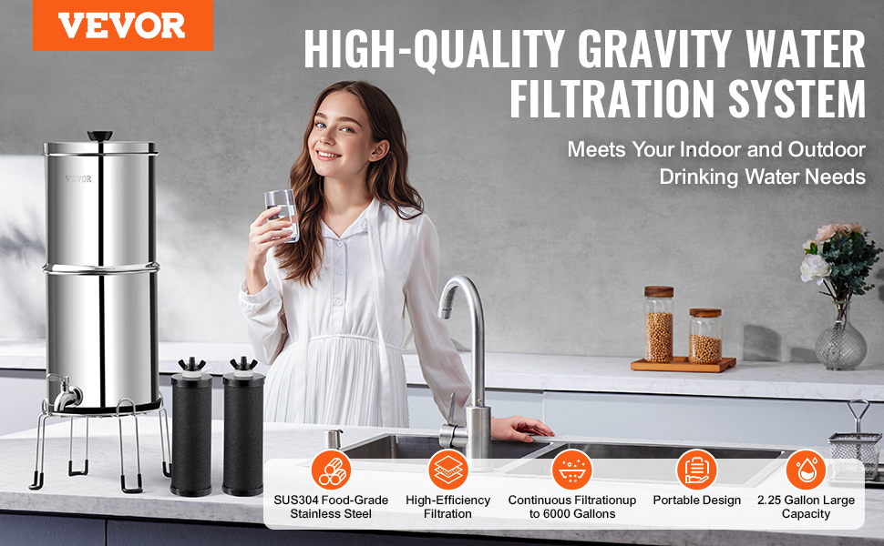 Náš gravitačný vodný filter je vyrobený z prvotriednej nehrdzavejúcej ocele SUS304 potravinárskej kvality, je hrubý, robustný a odolný. Využíva proces bezšvového naťahovania bez zvarov a netesností, čo výrazne znižuje riziko úniku a zabezpečuje dlhodobú stabilitu a bezpečnosť.
