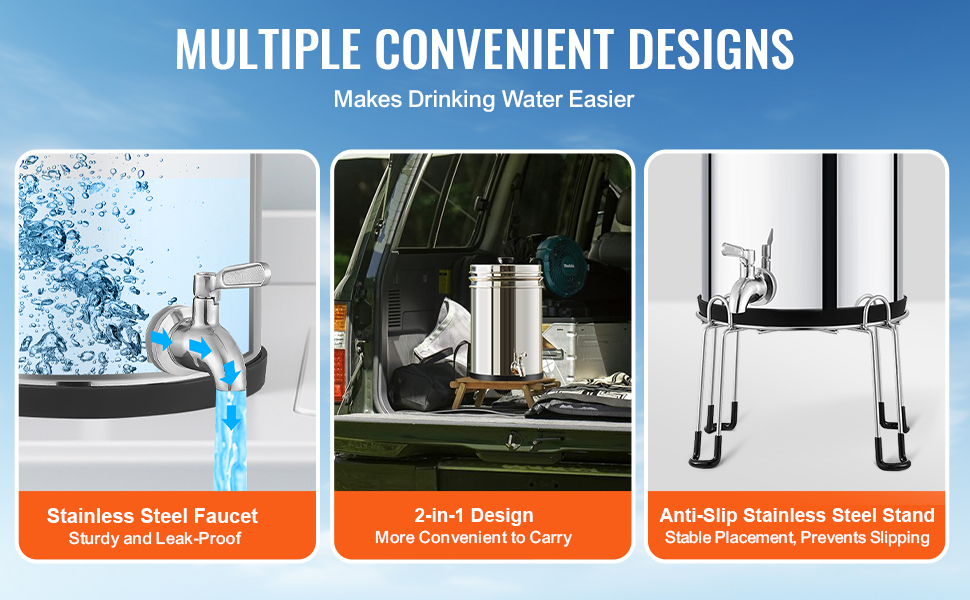 Náš pultový systém z nehrdzavejúcej ocele obsahuje kohútik z nehrdzavejúcej ocele, ktorý je robustný a odolný voči únikom. Je kompaktne navrhnutý, zmenší sa na polovicu svojej veľkosti, čo uľahčuje skladovanie a prenášanie. Je tiež vybavený protišmykovým stojanom, ktorý zabezpečuje stabilné umiestnenie.