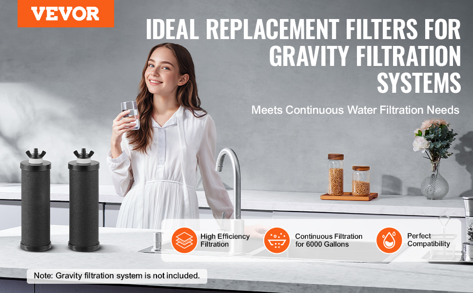 Naše náhradné filtre sú dokonale kompatibilné s väčšinou gravitačných systémov filtrácie vody na trhu, čím spĺňajú vaše udržateľné potreby pitnej vody. Každý pár filtrov dokáže nepretržite čistiť až 6000 galónov vody, čím účinne znižuje náklady na pitnú vodu.