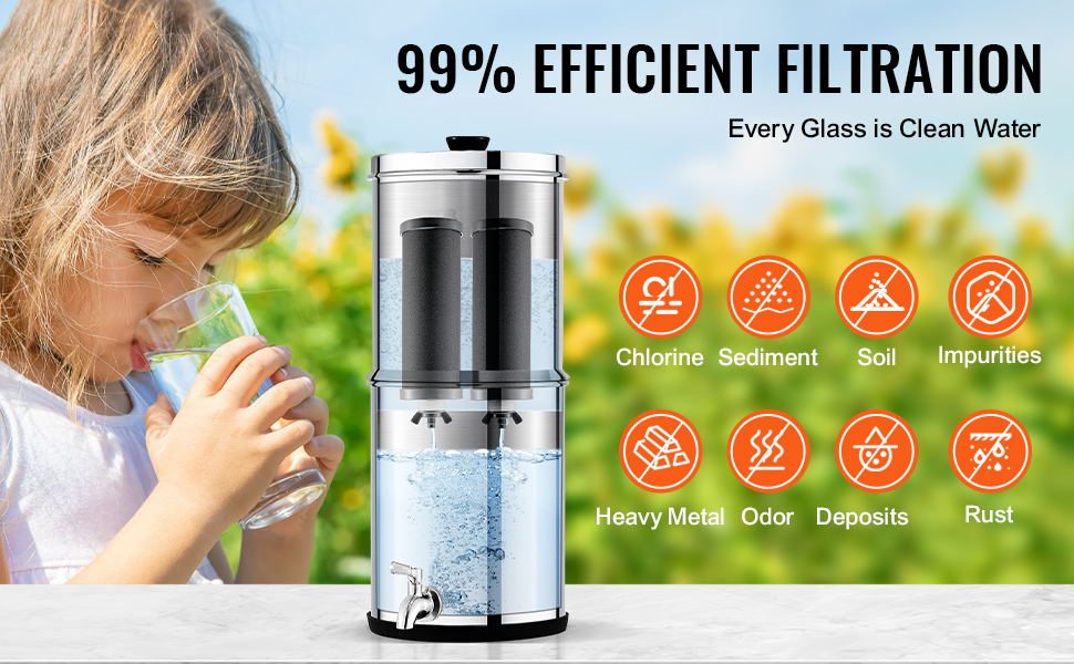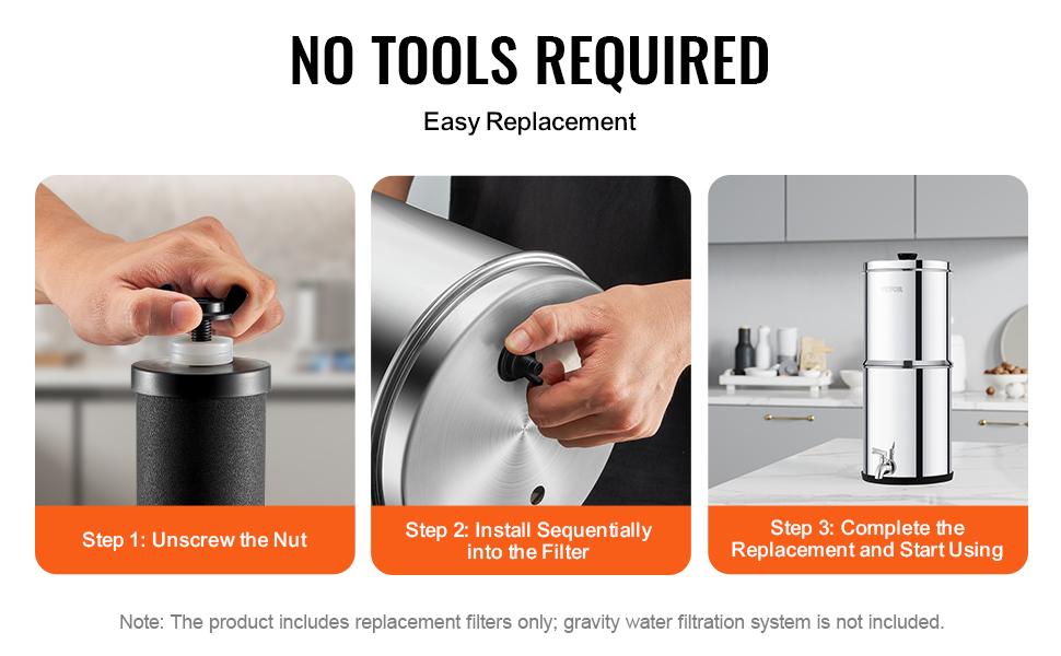 Náš gravitačný vodný filter sa dá ľahko nainštalovať bez použitia akéhokoľvek náradia. Stačí odskrutkovať maticu a nainštalovať filtre do gravitačného systému vodného filtra. Tesne priliehajúce matice zabezpečujú, že nedôjde k úniku, vďaka čomu je výrobok dokonale kompatibilný s rôznymi systémami gravitačnej filtrácie vody.