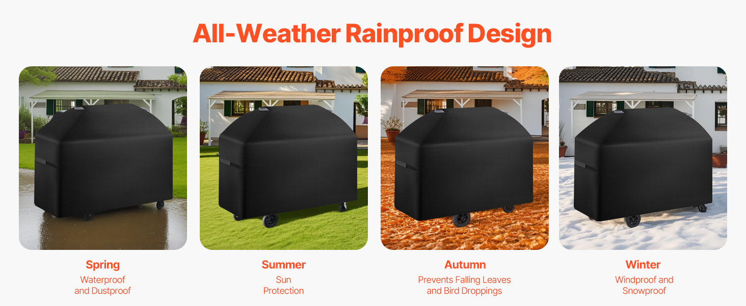 Vďaka tomuto viacvrstvovému systému je kryt na gril vhodný na všetky ročné obdobia, čo zaručuje, že váš gril zostane čistý a suchý počas celého roka bez ohľadu na počasie.