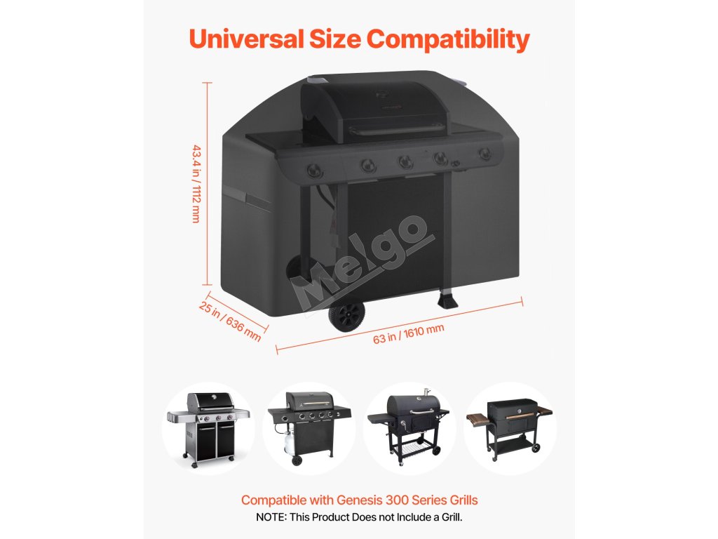 | Uplatniteľné výrobky | Hodí sa na kryty s dĺžkou do 63 palcov a šírkou do 25 palcov, kompatibilné s grilmi série Genesis 300. |