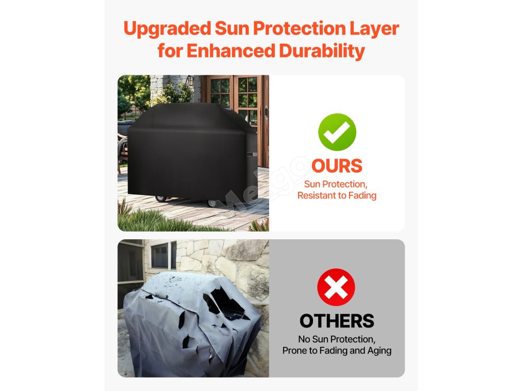 Univerzálny dizajn kompatibilný s väčšinou grilov. Stačí zmerať šírku, výšku a hĺbku vášho grilu a vybrať správnu veľkosť. Tento kryt na vonkajší gril sa dokonale hodí pre vaše zariadenie na grilovanie.