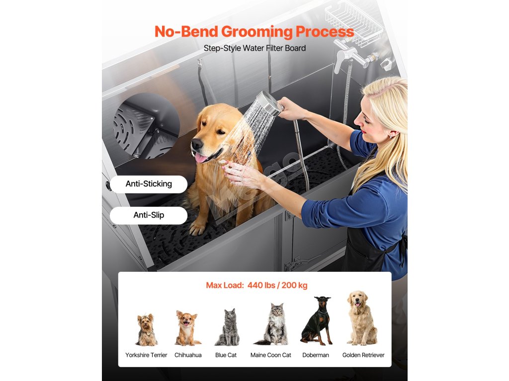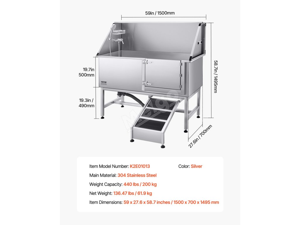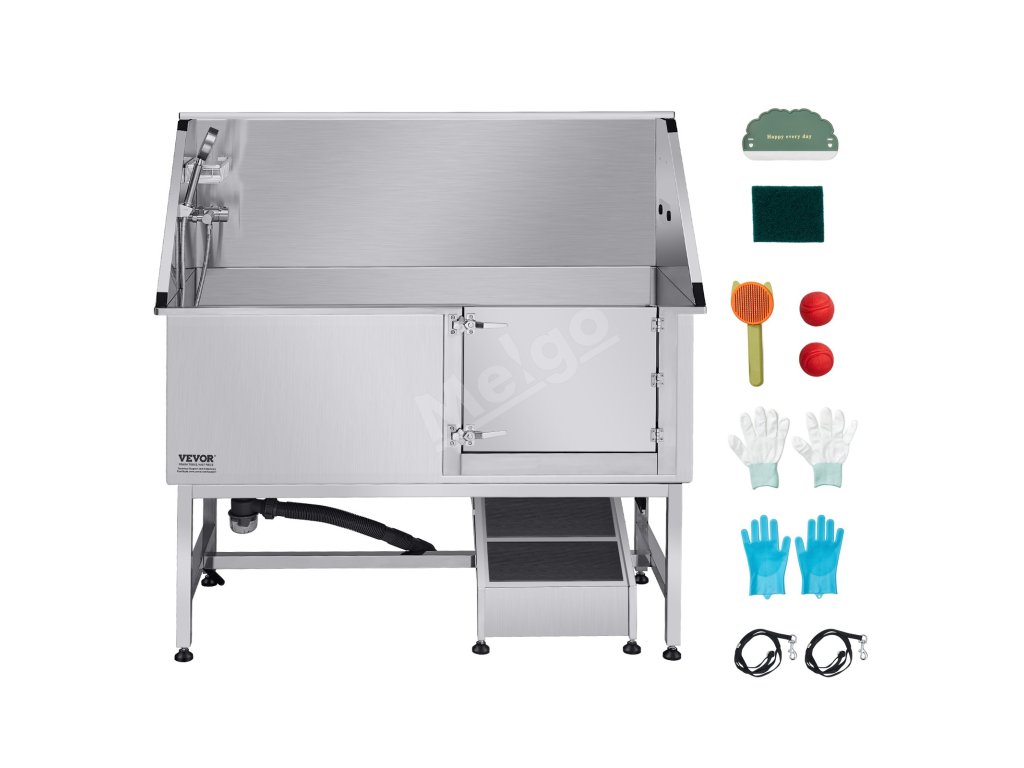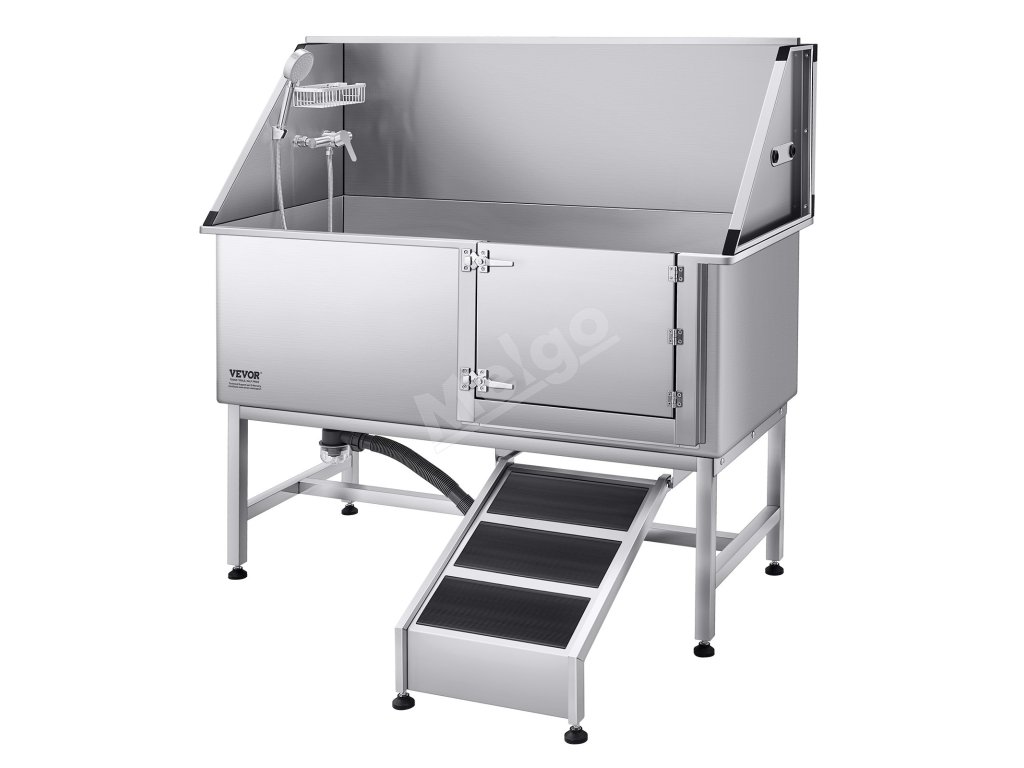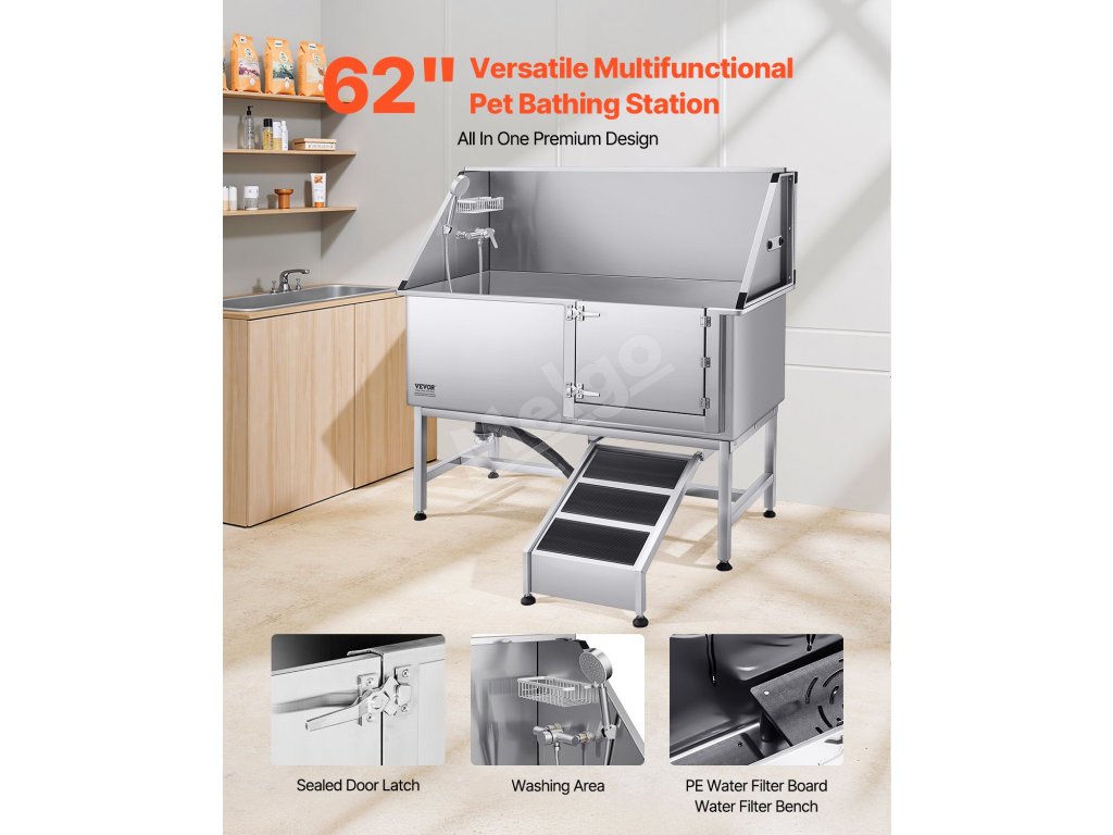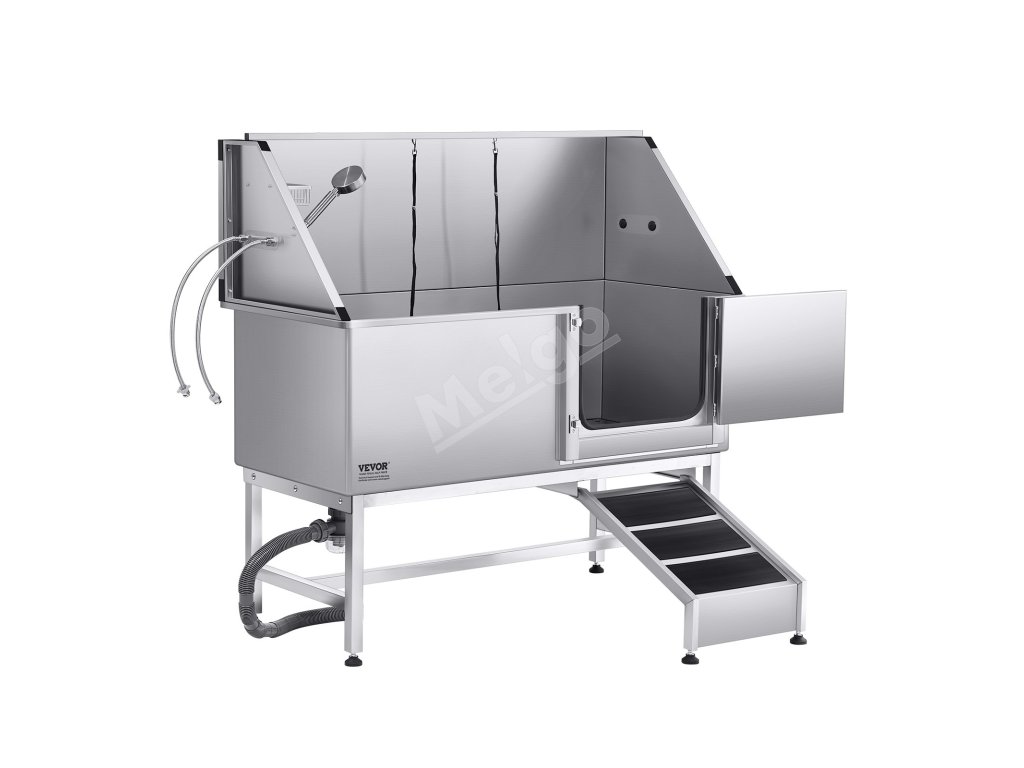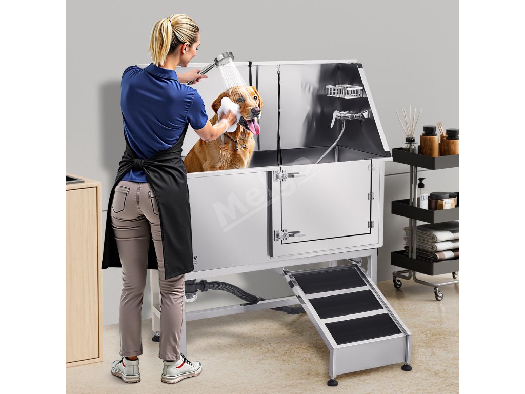 Nerezová vaňa na kúpanie psov 157,48 cm s rampou, pe filtrom a sprchou