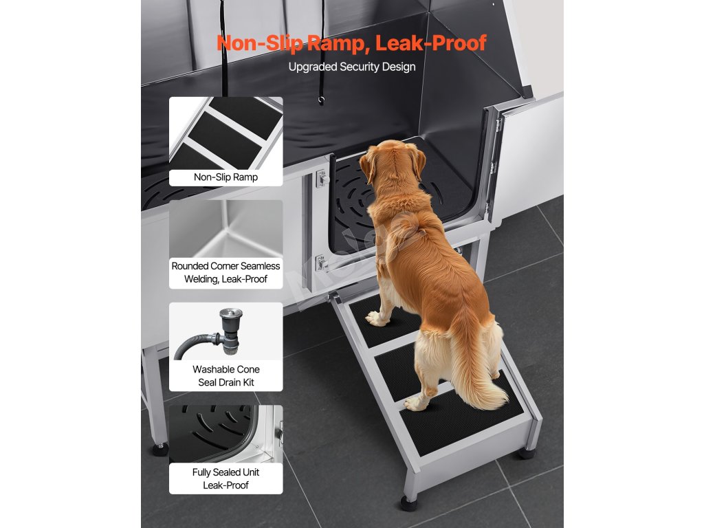 Vďaka bezšvovému zvaru z jedného kusu a zabudovaným tesniacim pásikom táto vaňa zaručuje, že voda neunikne. Je vyrobená z nehrdzavejúcej ocele, je odolná voči korózii a robustná, pričom si časom zachová svoj nový vzhľad. Vanička má hladké okraje, ktoré zaisťujú bezpečnosť domácich zvierat aj používateľov počas kúpania.