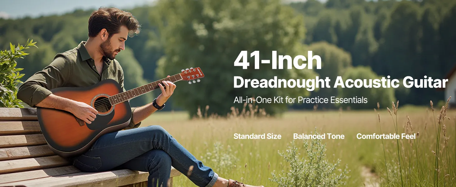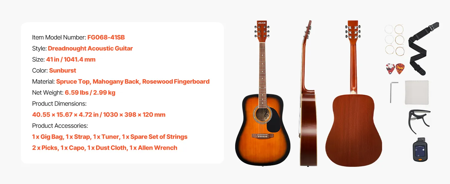 Dreadnought akustická gitara 41 in / 1041.4 mm sunburst s púzdrom