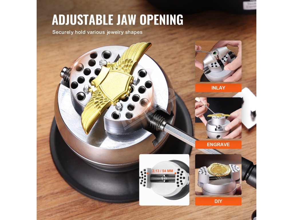 Univerzálny guľový zverák je všestranný nástroj, ktorý poskytuje flexibilné a spoľahlivé riešenie pre klenotníkov, rezbárov, domácich majstrov a ďalších, ktorí na dosiahnutie svojich tvorivých a pracovných cieľov potrebujú presné obrábanie.