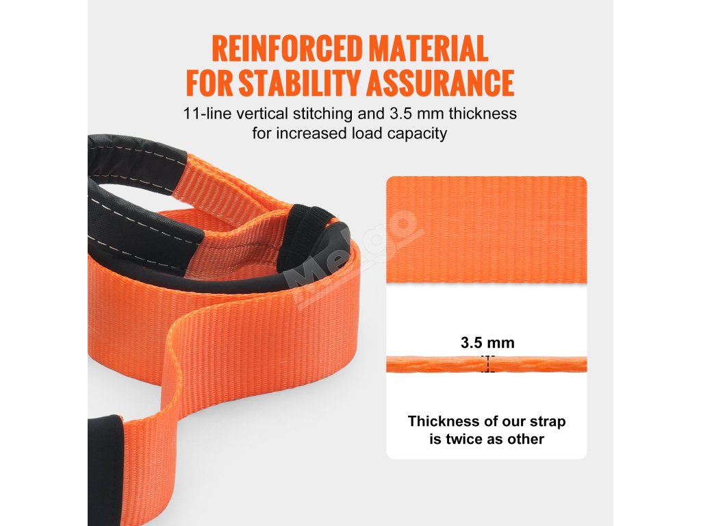 Náš ťažný popruh, vyrobený z odolného polyesteru, sa vyznačuje vynikajúcou ochranou proti UV žiareniu vo vonkajšom prostredí a výnimočnou odolnosťou proti oderu a pevnosťou v ťahu. Zaručuje bezpečné ťahanie vozidla v každej situácii.