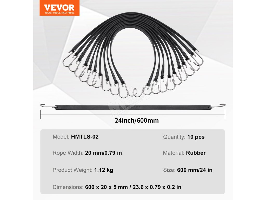 Sada 10 bungee pásov 20 mm 24" s oceľovými hákmi čierne na náklad