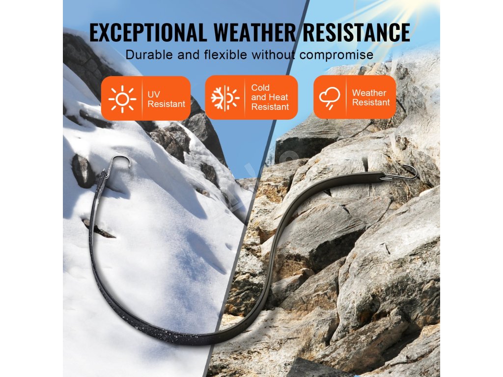 Vďaka výnimočnej odolnosti voči poveternostným vplyvom si tieto robustné bungee popruhy zachovávajú výkon aj v náročných podmienkach, čím zabezpečujú dlhú životnosť a spoľahlivú stabilitu.