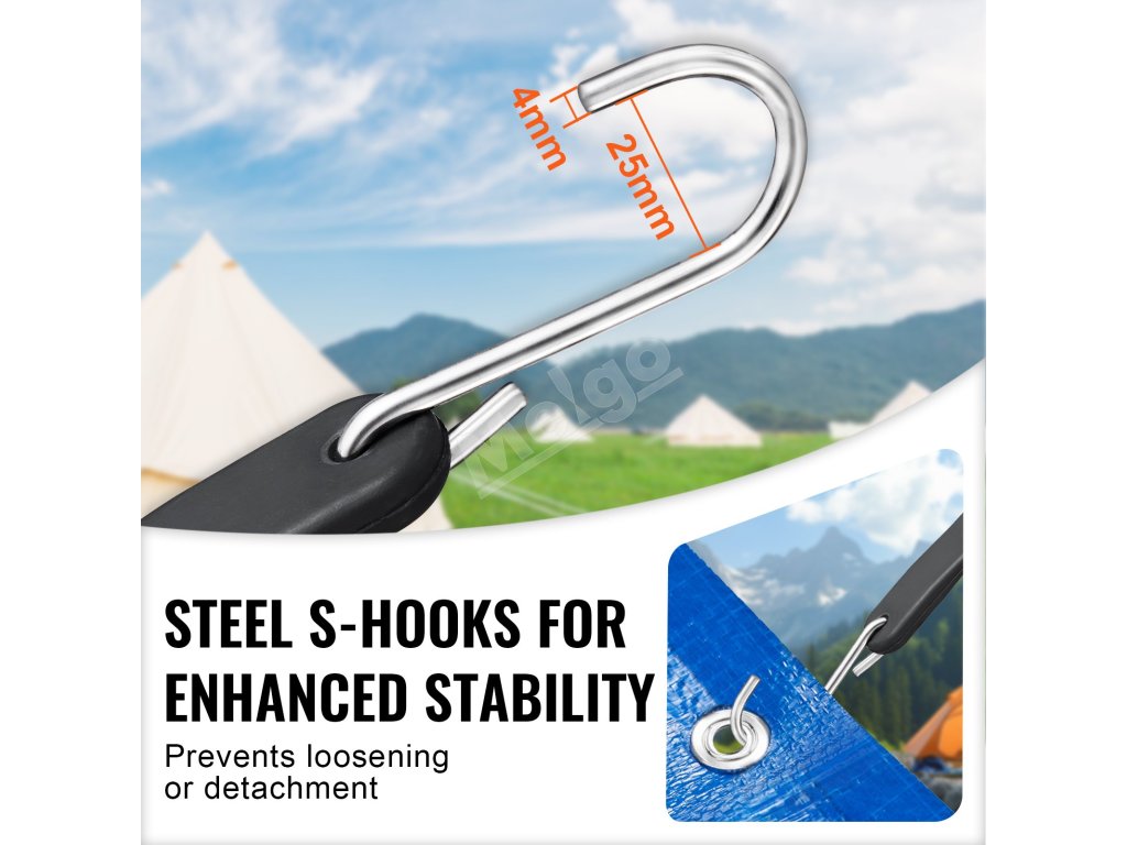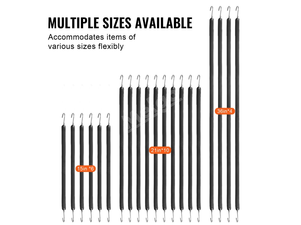 Vysokopevnostné háčiky na týchto súpravách bungee šnúr, ktoré sú navrhnuté na bezpečnú prepravu a skladovanie, odolávajú deformácii a zlomeniu a poskytujú dodatočnú bezpečnosť tým, že chránia predmety pred nárazmi a otrasmi.