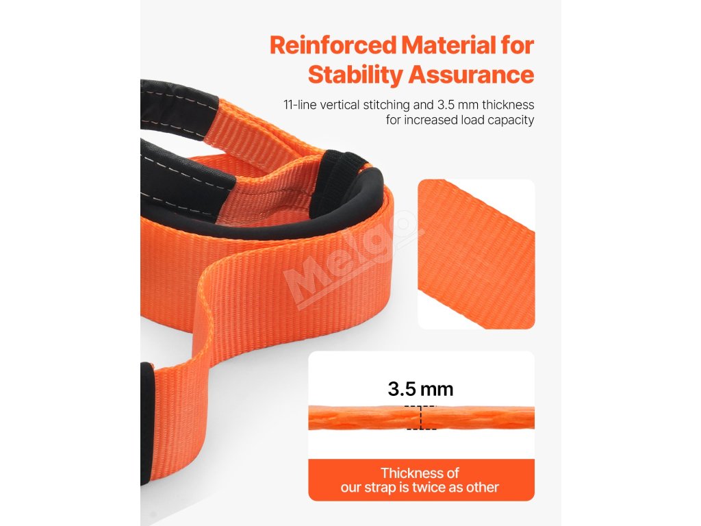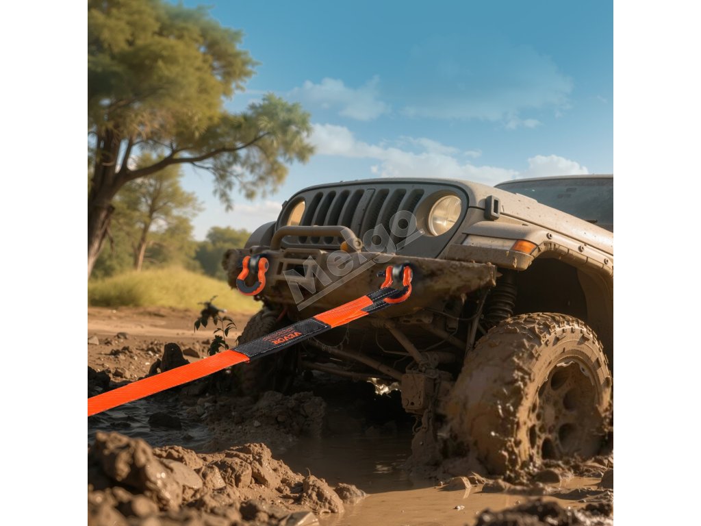 Náš ťažný popruh, vyrobený z odolného polyesteru, sa vyznačuje vynikajúcou ochranou proti UV žiareniu vo vonkajšom prostredí a výnimočnou odolnosťou proti oderu a pevnosťou v ťahu. Zaručuje bezpečné ťahanie vozidla v každej situácii.