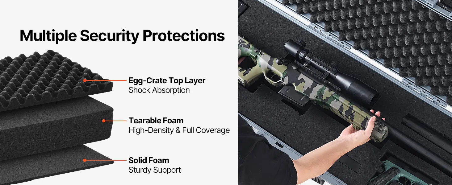 Toto tvrdé puzdro na pušky s robustnou konštrukciou zaručuje, že vaše strelné zbrane budú vždy dobre chránené a budú v bezpečí v každej situácii.