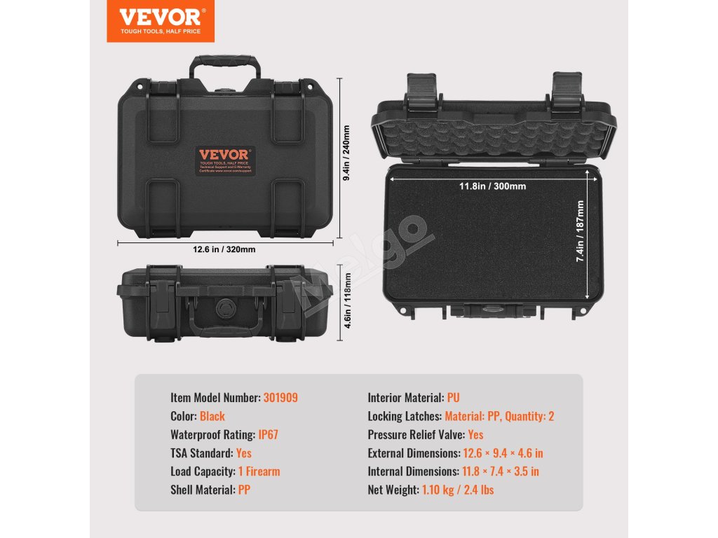 Tvrdé puzdro pre pištoľ, pena, vodotesné, zamykateľné 12.59×9.01×4.4in