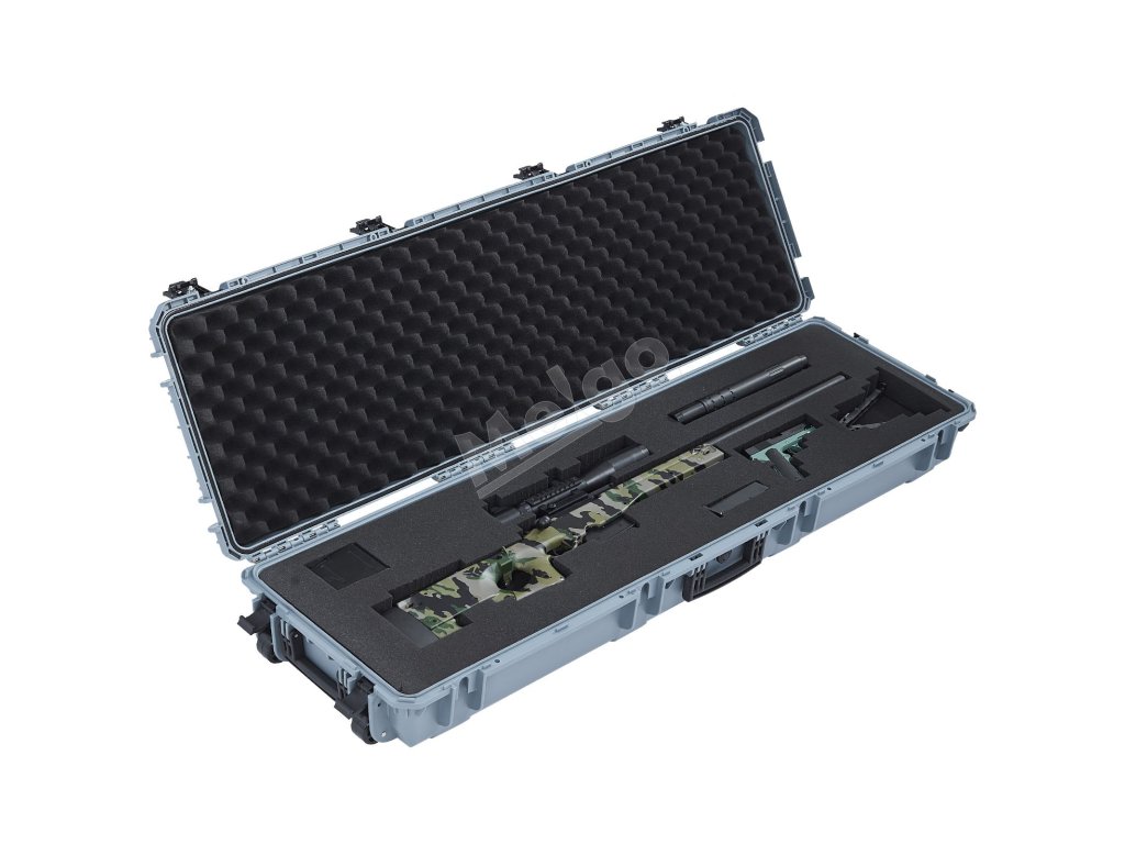 Uzamykateľný kufor na pušku, predrezaná pena, 1320 mm, kolieska, IP67