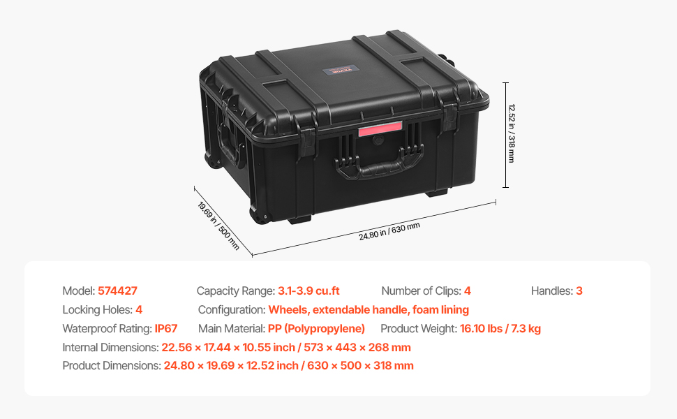 | Vnútorné rozmery | 22.48 x 17,48 x 10,55 palca / 573 x 443 x 268 mm |