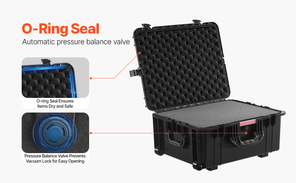 Tento vodotesný pevný kufor vybavený automatickým zariadením na uvoľnenie tlaku udržiava rovnováhu vnútorného a vonkajšieho tlaku, čím zabraňuje poškodeniu spôsobenému zmenami tlaku vzduchu počas cestovania.