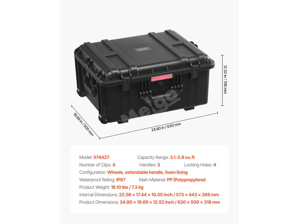 Vodotesné puzdro 3.5 cu.ft IP67 s kolieskami, výsuvnou rukoväťou, penou