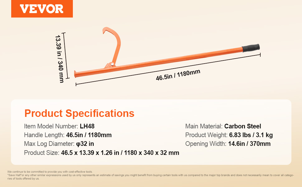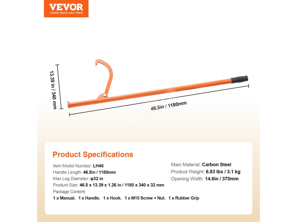 Tento zdvihák na polená s 46,5" rukoväťou využíva pákový efekt na jednoduché stohovanie a premiestňovanie dreva. Nastaviteľný hák je vhodný pre polená do veľkosti φ32'' a pogumovaná rukoväť zaisťuje pohodlné uchopenie. Je vyrobený z odolnej uhlíkovej ocele s povrchovou úpravou odolnou proti korózii a je konštruovaný na dlhodobé používanie.