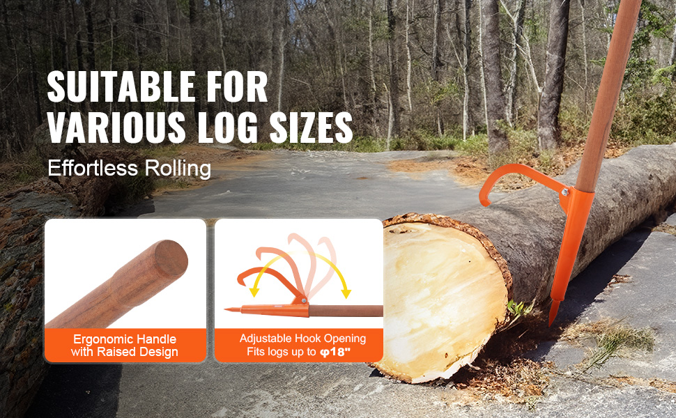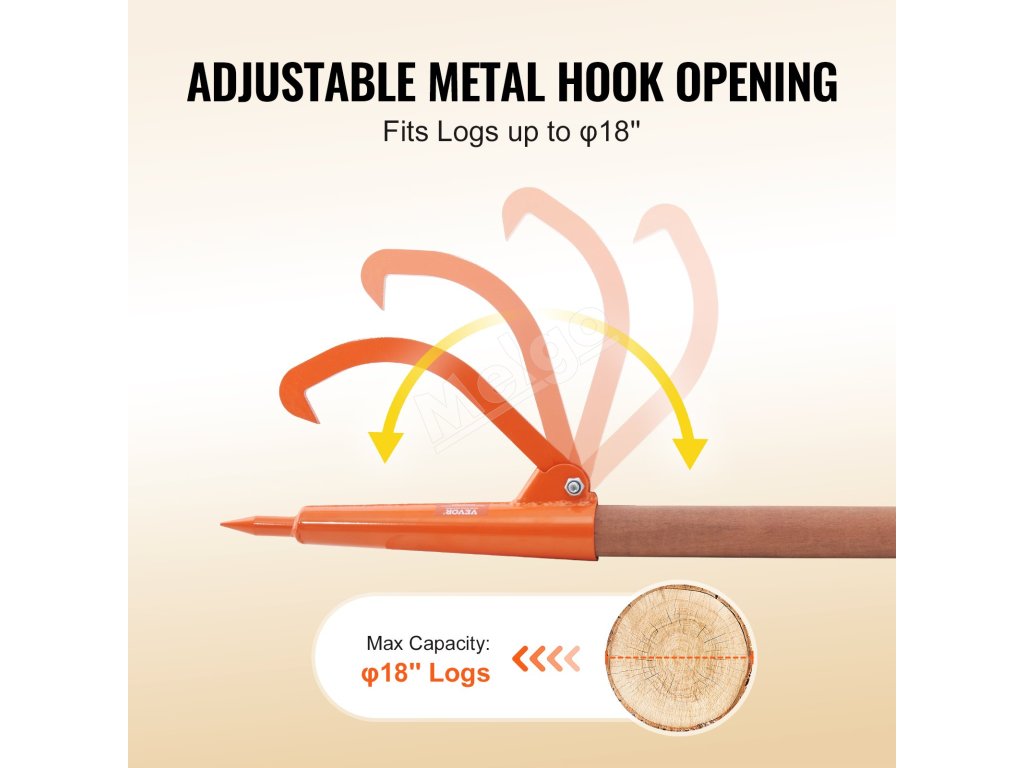 Tento zdvihák na polená je vybavený nastaviteľným hákom, ktorý umožňuje jednoduché odvaľovanie rôznych veľkostí dreva, čím zabezpečuje pohodlie a menšiu námahu.