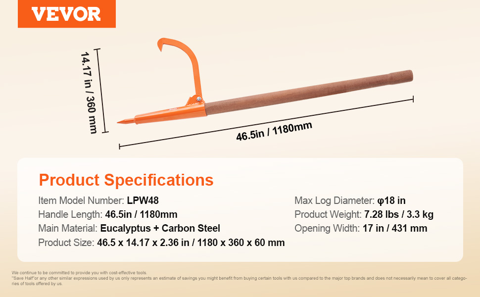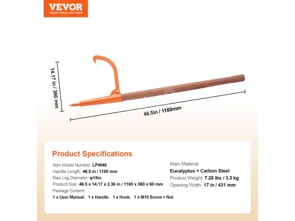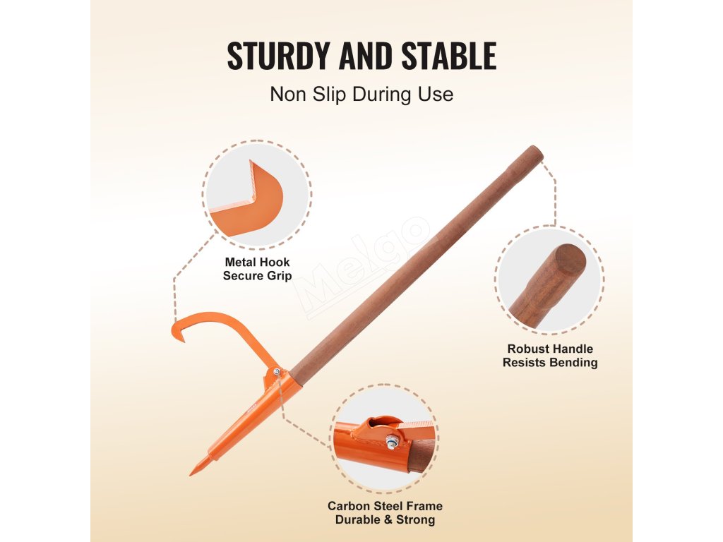 Tento 46,5-palcový zdvihák na polená využíva pákový efekt na jednoduché kotúľanie, ťahanie a úpravu dreva na rezanie. Nastaviteľný hák je vhodný pre polená do veľkosti φ19" a pogumovaná rukoväť zaisťuje pohodlné uchopenie. Je vyrobený z odolnej a nehrdzavejúcej uhlíkovej ocele a je ideálny na dlhodobé používanie.