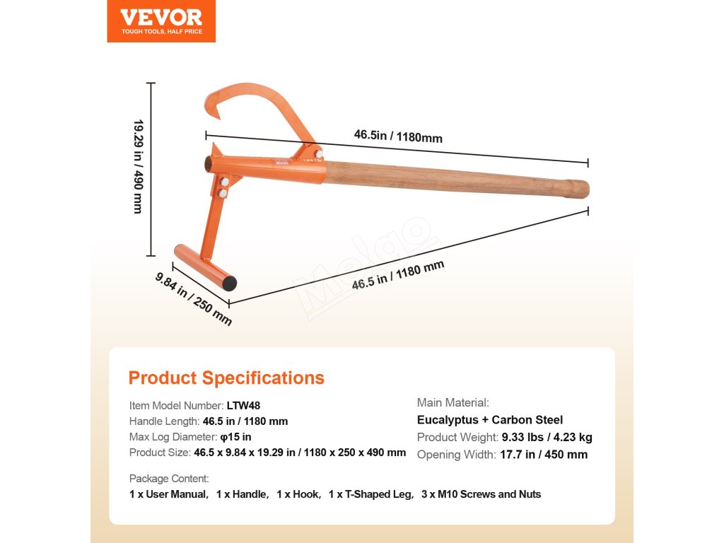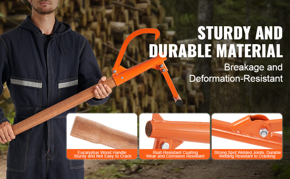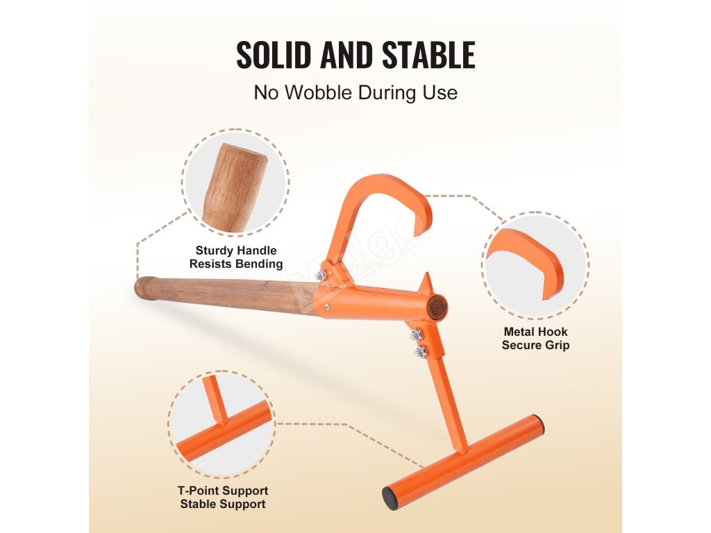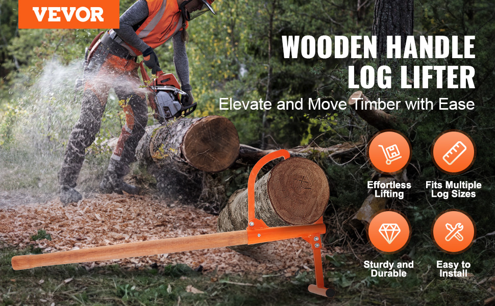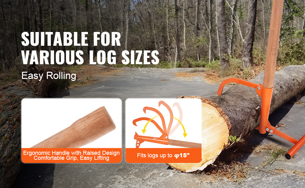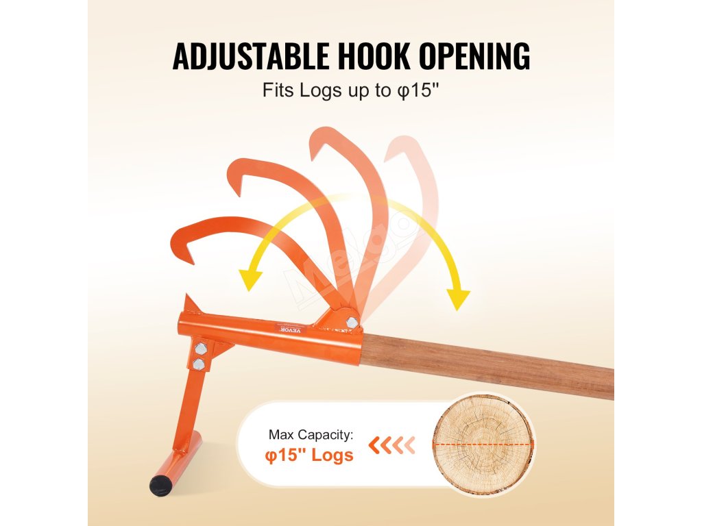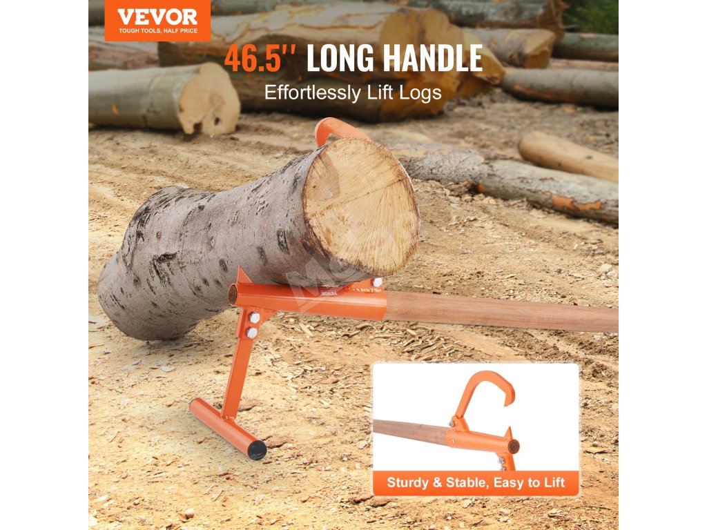 Drevorubač s 46,5" dlhou rukoväťou využíva princíp pákového efektu na ľahké zdvíhanie dreva, vhodné na rezanie. Zdvihák na polená s nastaviteľným otvorom pre hák, je vhodný pre max. okrúhle drevo φ15''. Môžete s ním spolupracovať s motorovou pílou, štiepačkou dreva a inými nástrojmi na rezanie dreva.