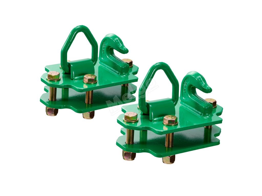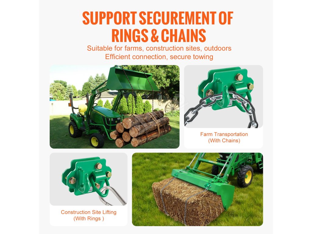 Tieto háky na uchopenie traktorovej lyžice sa môžu používať samostatne alebo v spojení s reťazami alebo račňovými viazačmi, čo umožňuje rýchle ťahanie, manipuláciu a zabezpečovacie úlohy. Táto všestrannosť zaručuje, že operácie sú efektívne a šetria čas.