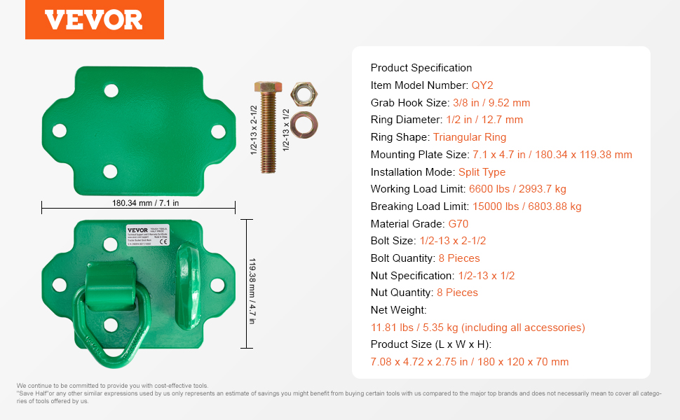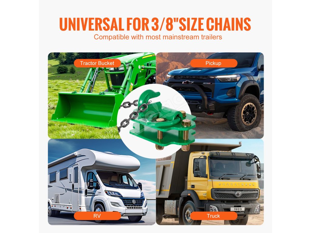 Háky traktorového drapáka používajú štandardnú veľkosť reťaze 3/9", ktorá je kompatibilná s väčšinou vozidiel, ako sú poľnohospodárske vozidlá, traktorové lyžice a terénne vozidlá. Je opakovane použiteľný a ideálny pre núdzové situácie, čím pomáha znižovať potrebu častých nákupov.
