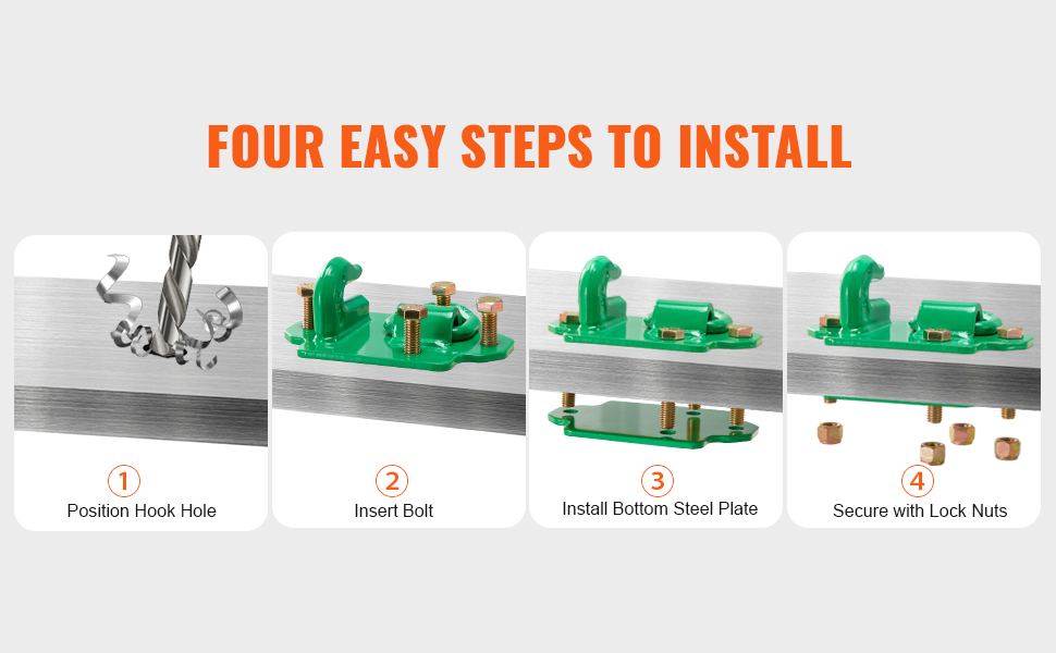 Montáž háku na ťahač so skrutkami je jednoduchá, vyžaduje si len štyri kroky, ktoré sa vykonajú za niekoľko minút bez vŕtania alebo externých nástrojov. Inštaláciu zvládnu ľahko a efektívne aj začiatočníci.