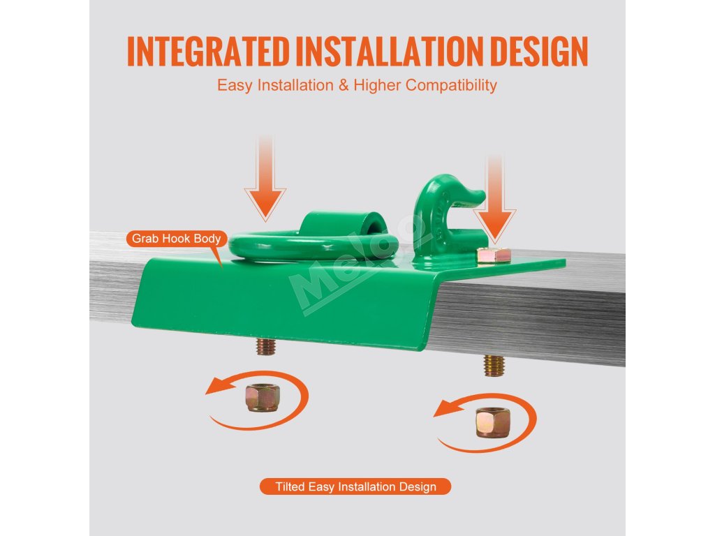 Tento traktorový hák na uchopenie lyžice sa môže používať samostatne alebo v kombinácii s ťažným hákom, okom s reťazou alebo račňovým viazačom. Táto všestrannosť umožňuje rýchle ťahanie, manipuláciu a zabezpečovanie úloh, čím sa zabezpečuje efektívnosť prevádzky.