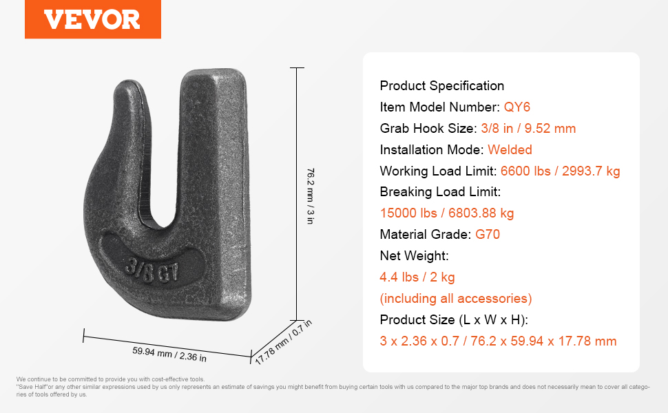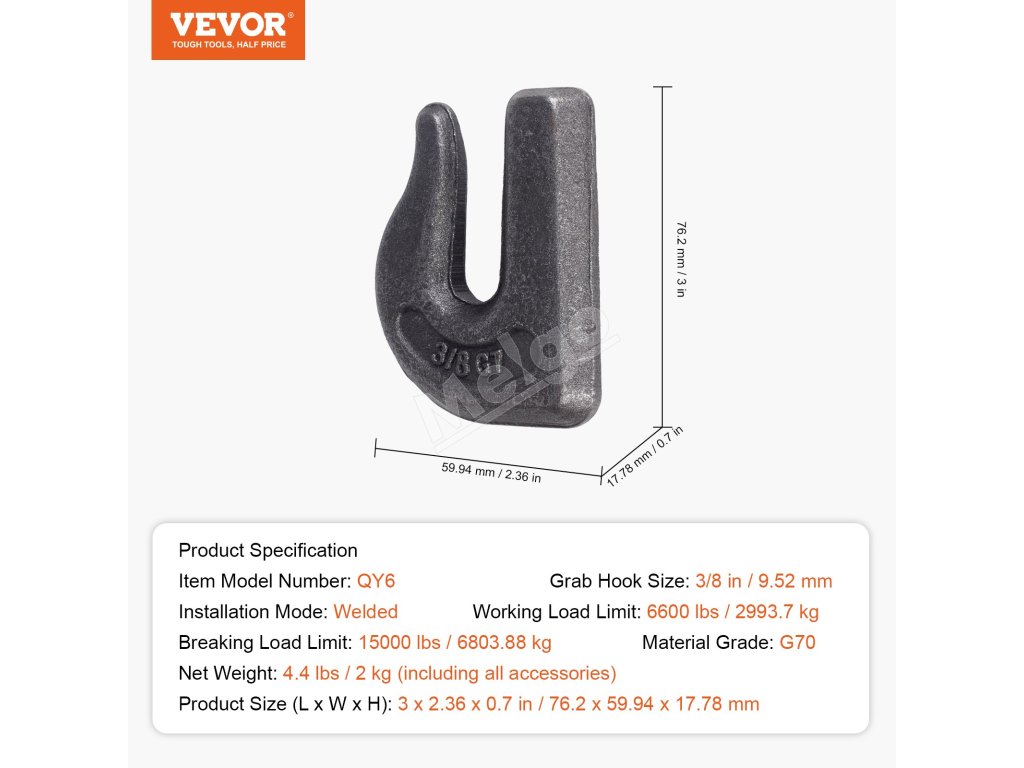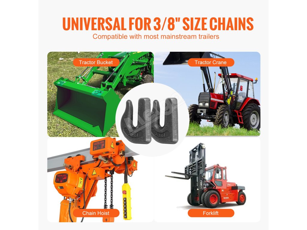 Hák na uchopenie traktora používa štandardnú veľkosť reťaze 3/8", čím ponúka vysokú kompatibilitu. Je priamo privarený na vhodné typy vozidiel, vďaka čomu je ideálny na ťahanie a zdvíhanie úloh na farmách, v továrňach a prístavoch, zvyšuje robustnosť a zároveň je pohodlný a efektívny.