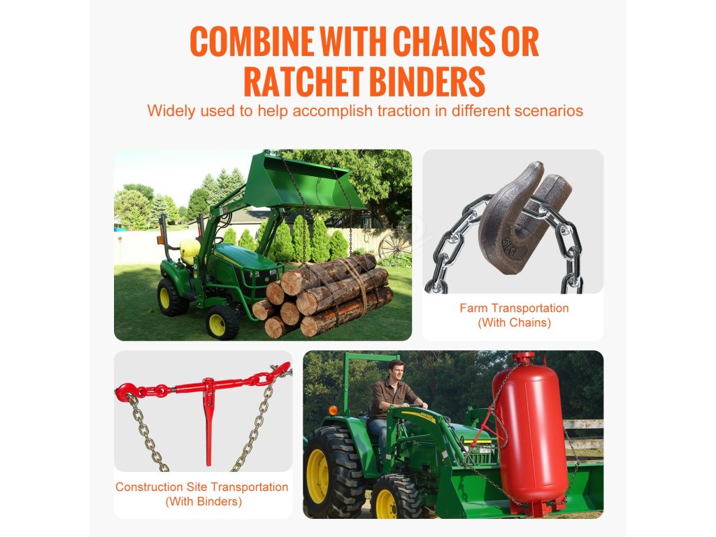 Tento hák na uchopenie lyžice traktora sa môže používať samostatne alebo v spojení s reťazami alebo račňovými viazačmi na vykonávanie úloh ťahania, manipulácie a zaistenia. Táto všestrannosť zabezpečuje rýchle a efektívne operácie.