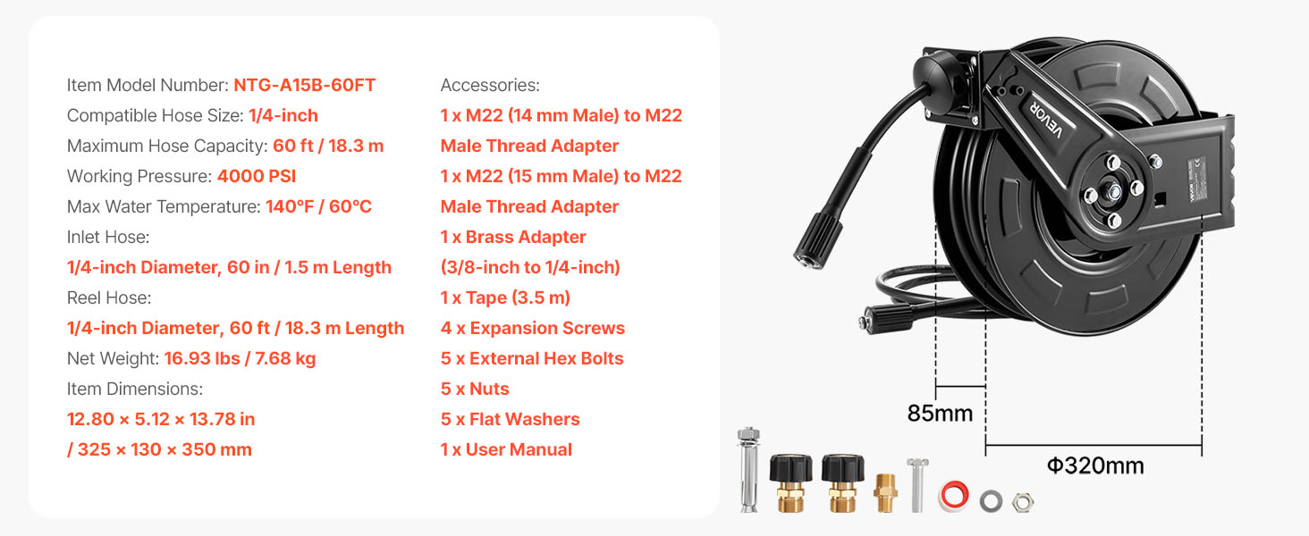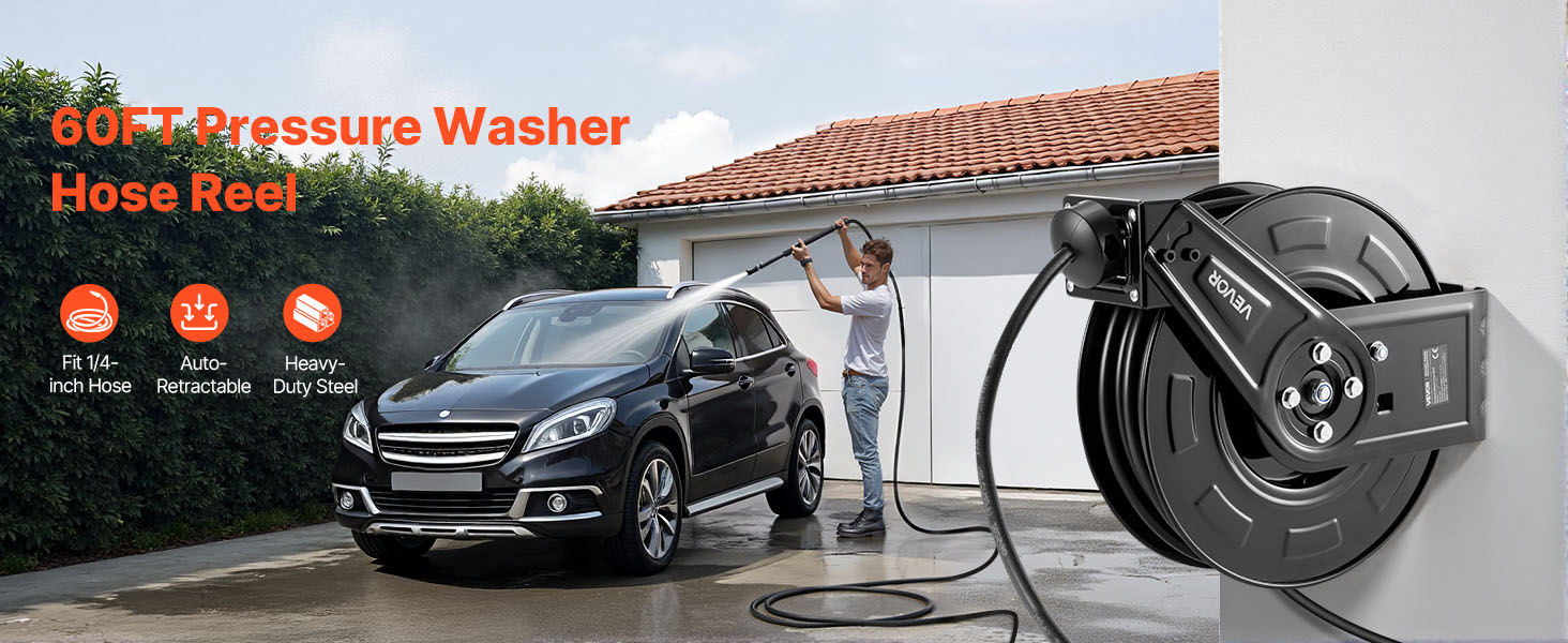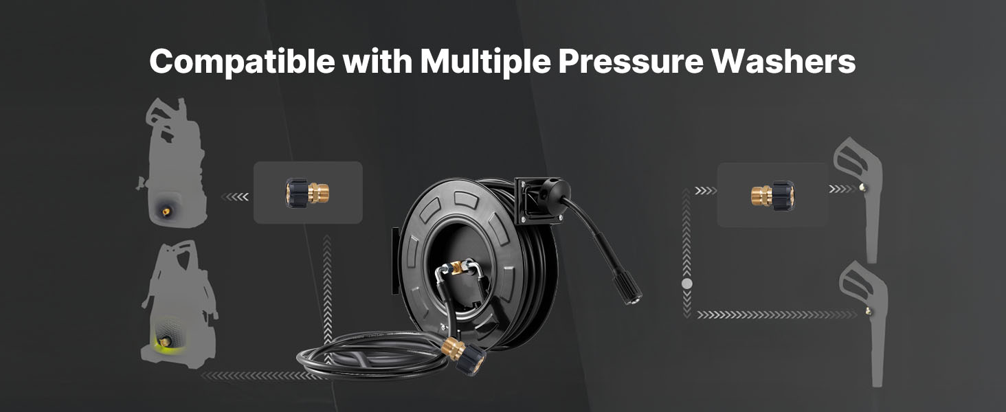 Tento navijak na hadice umožňuje úhľadné uloženie hadíc a zabraňuje ich zamotaniu. Je ideálny pre tlakové umývačky, čistenie áut, domáce použitie a zavlažovanie záhrady. Je univerzálny a ľahko použiteľný a zvyšuje efektívnosť čistenia a zavlažovania pri rôznych každodenných úlohách.