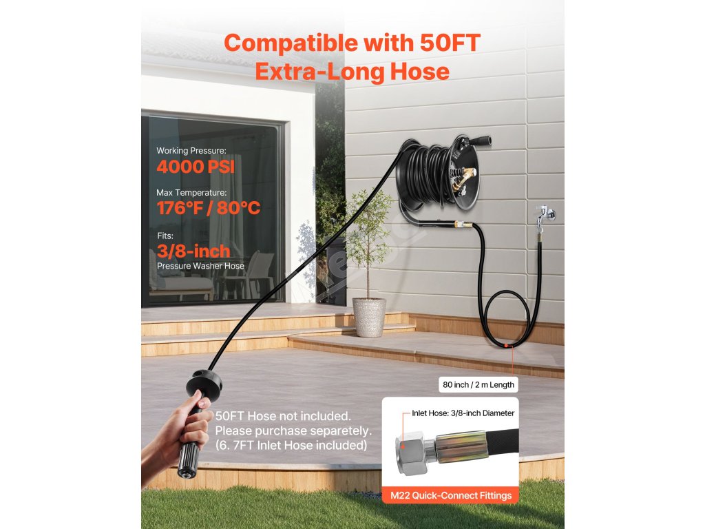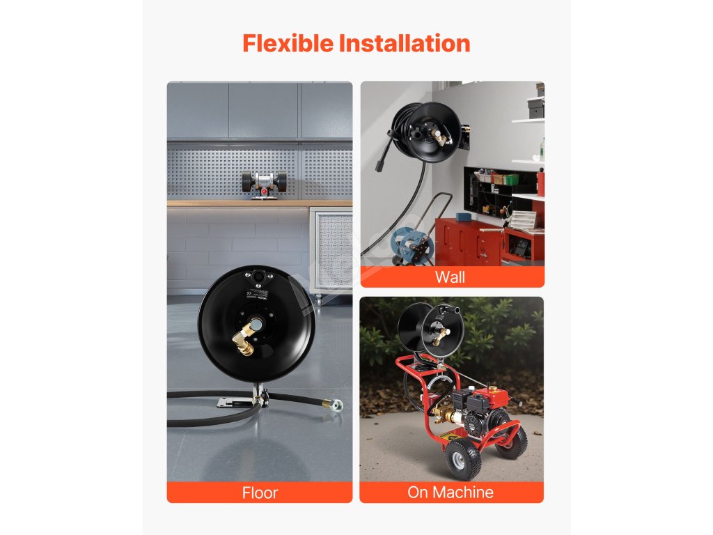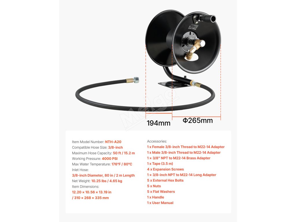 Tento hadicový bubon prehľadne ukladá hadice a zabraňuje ich zamotávaniu. Ideálny pre tlakové umývačky, čistenie automobilov, domáce použitie a zavlažovanie záhrady. Je všestranný a ľahko sa používa, zlepšuje účinnosť čistenia a zavlažovania pri rôznych každodenných úlohách.