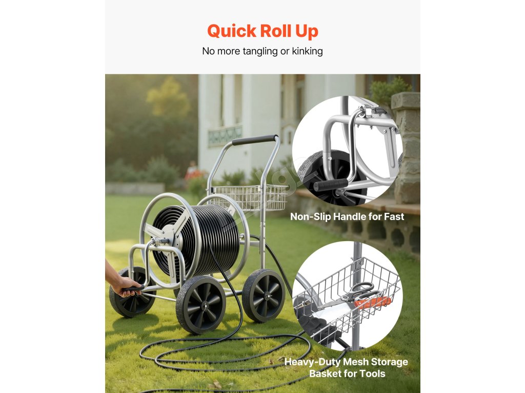 Záhradný vozík na hadicu s navijakom, 91.44 m × 1.59 cm, 4 kolesá
