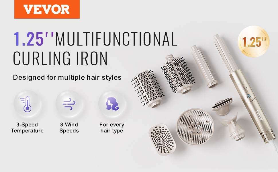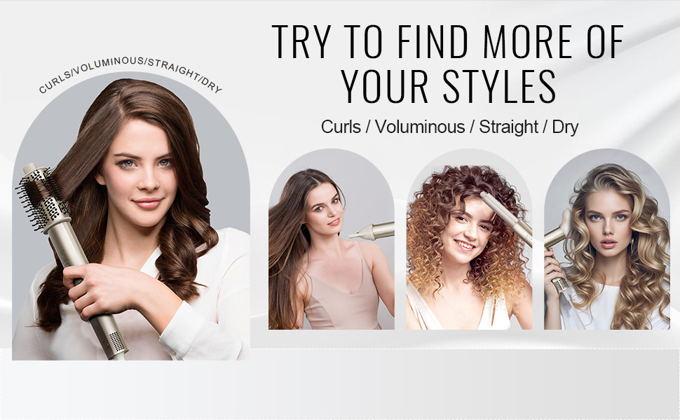 Obsahuje 8 multifunkčných doplnkov: ľavý/pravý automatický barel, objemovú teplovzdušnú kefu, uhladzovaciu narovnávaciu kefu, stylingovú trysku, difúznu trysku, uhladzovaciu trysku a kulmu. Súprava podporuje rôzne účesy, od kučier až po rovné vlasy, vďaka čomu je úprava vlasov príjemnejšia.