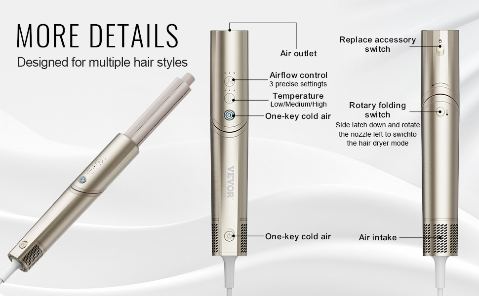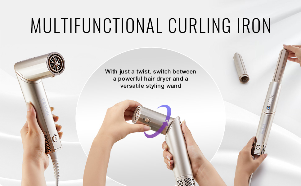 Navrhnutá na pohodlné používanie, používatelia môžu ľahko prepnúť z režimu výkonného sušiča vlasov do režimu multifunkčnej kulmy jednoduchým stlačením alebo otočením ovládacieho tlačidla, čím ušetria čas a zvýšia účinnosť stylingu.