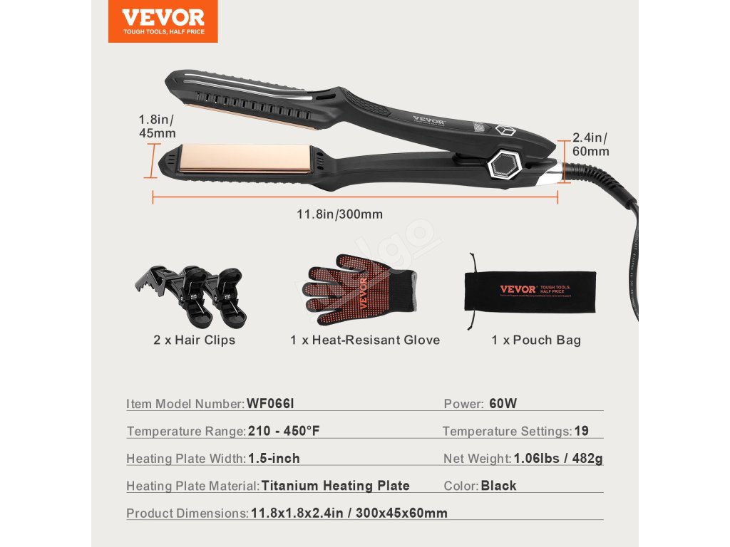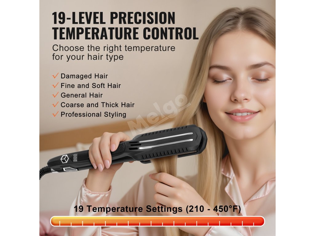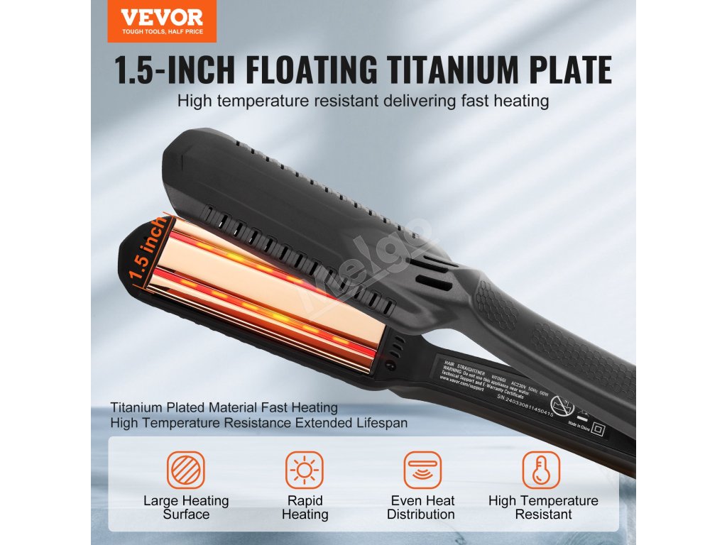 Žehlička na vlasy, titánové 1.5-inch platne lcd 19 teplôt 210°F–450°F