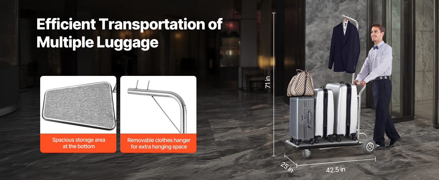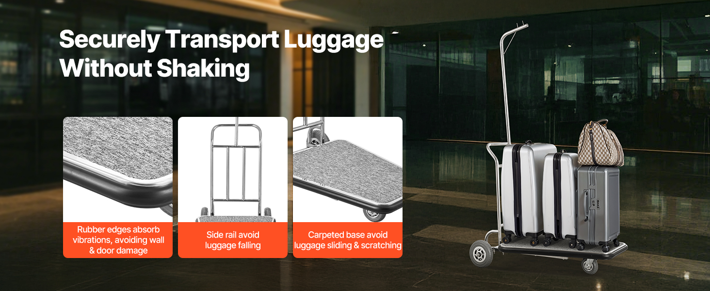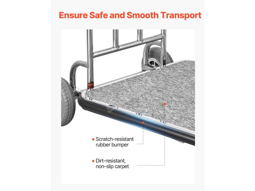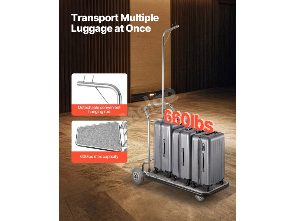 Vylepšite svoj hotel týmto tichým a odolným vozíkom na batožinu. S maximálnou nosnosťou 600 libier bez námahy zvládne viacero kusov batožiny naraz, takže odbavenie bude hračka!