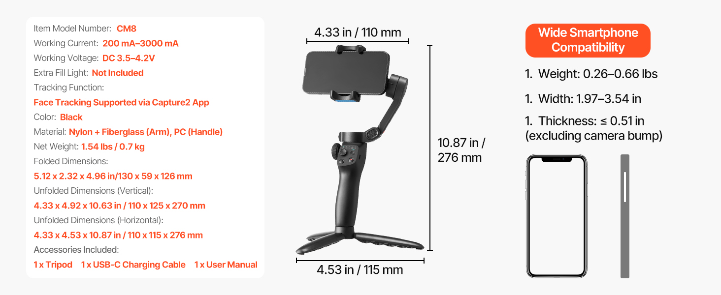 Je dostatočne kompaktný, aby sa zmestil do tašky alebo dokonca do vrecka - v zloženom stave meria len 5,12 x 2,32 x 4,96 palca. Či už ste na prechádzke mestom alebo na horskej túre, tento 3-osový ručný gimbalový stabilizátor je pripravený zachytiť každý nezabudnuteľný okamih.