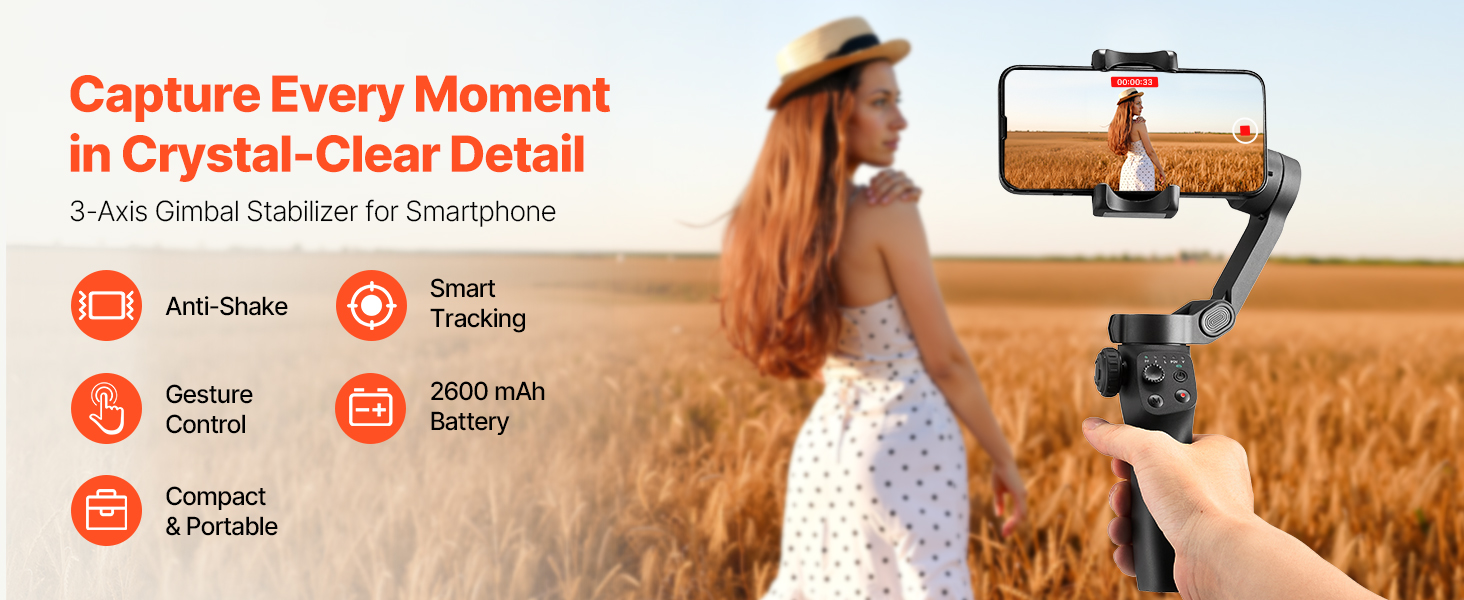 3-osový gimbalový stabilizátor pre smartfón, snímanie kdekoľvek