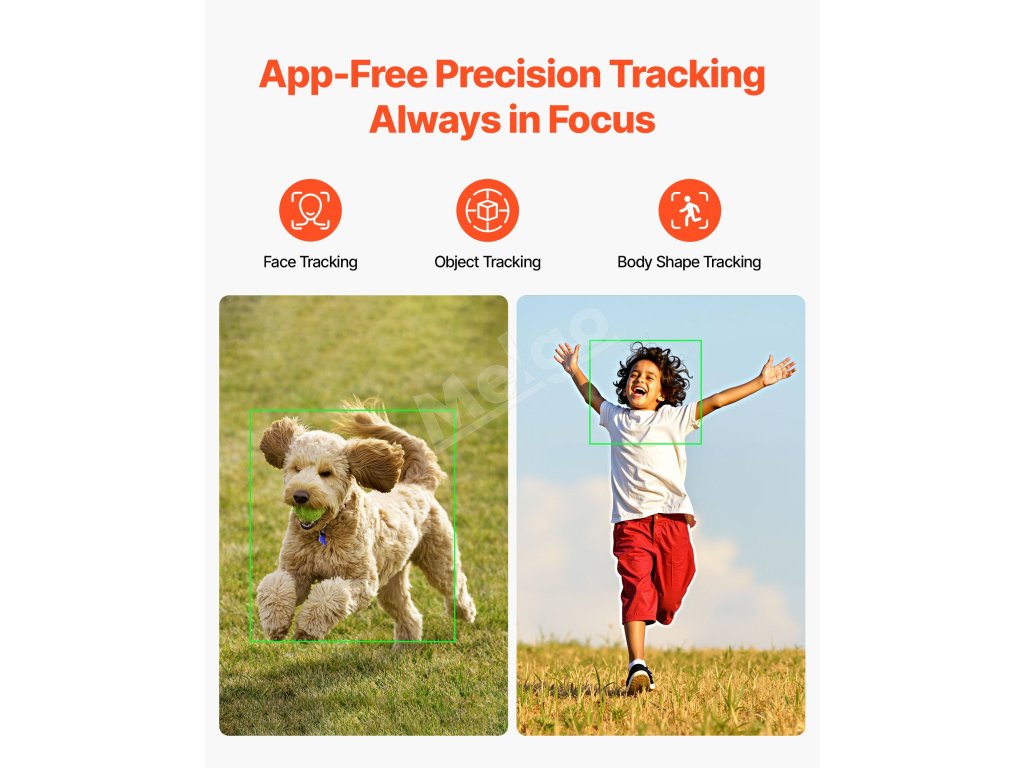 Vďaka sledovaniu pomocou umelej inteligencie a ovládaniu gestami presne zameriava tváre, telá alebo objekty - nie je potrebná žiadna aplikácia APP. Batéria s kapacitou 2600 mAh poskytuje 4 hodiny prevádzky so zapnutým svetlom a sledovaním AI alebo 7-9 hodín s vypnutým svetlom a sledovaním tváre po 3-4 hodinách nabíjania. Sledovanie bez použitia rúk v priebehu niekoľkých sekúnd.